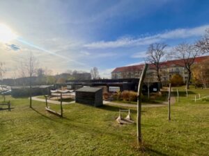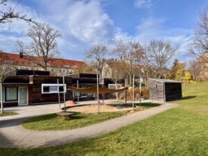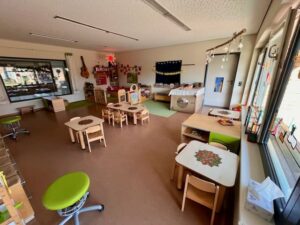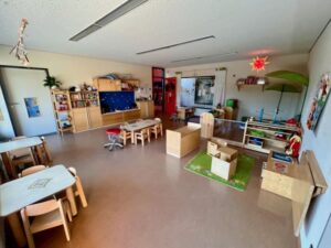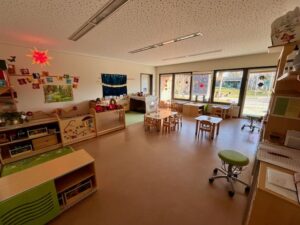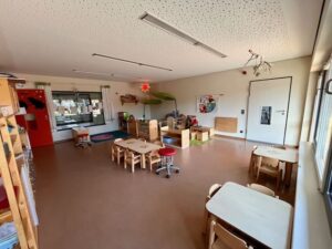 | Anzahl Räume | 5 Gruppenräume (zzgl. Schlafräume im Krippenbereich), 1 Bauzimmer, 1 Therapieraum, 1 Mehrzweckraum, 2 Gärten 3000 m2 (Kindergarten und Krippengarten) |