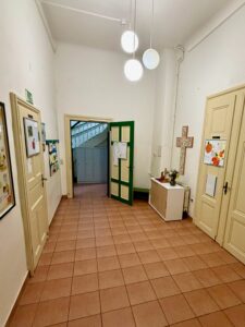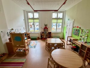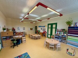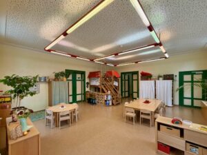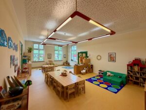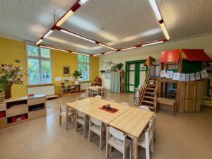 | Anzahl Räume | 4 Gruppenräume, 1 Bibliothek, 1 Mehrzweckraum, großer Garten (1500 m2) |