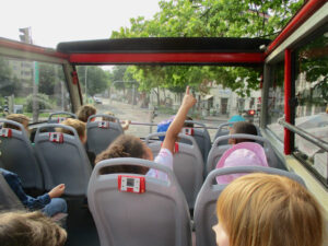 Am Montag, den 2. Juni, war es endlich so weit: 55 Kinder und ihre Erzieherinnen und Erzieher machten sich auf zu einer spannenden Entdeckungstour durch Leipzig – in einem riesigen, roten Doppelstockbus! Start war um 9:00 Uhr am Eutritzscher Markt. Schon beim Einsteigen war die Aufregung groß: Ein Bus mit zwei Etagen, offenem Dach und bester Sicht auf alles, was Leipzig zu bieten hat. Unser Stadtführer Sören begleitete uns mit vielen kindgerechten Geschichten und interessanten Fakten über bekannte und unbekannte Gebäude, Plätze und Denkmäler. Besonders aufregend war der Blick von oben auf die kleinen Autos und das Gefühl des Fahrtwinds im Haar. Während der Fahrt hatten die Kinder eine besondere Aufgabe: Ausschau halten nach den Leipziger Stadtfarben Blau und Gelb – und nach dem Wappentier, dem Löwen. Und siehe da: Der Löwe war überall zu entdecken – an Häuserwänden, auf Fahrzeugen oder Schildern. Es war ein erlebnisreicher Vormittag, bei dem alle Kinder nicht nur viel Spaß hatten, sondern auch ihre Stadt aus einer neuen Perspektive kennengelernt haben.